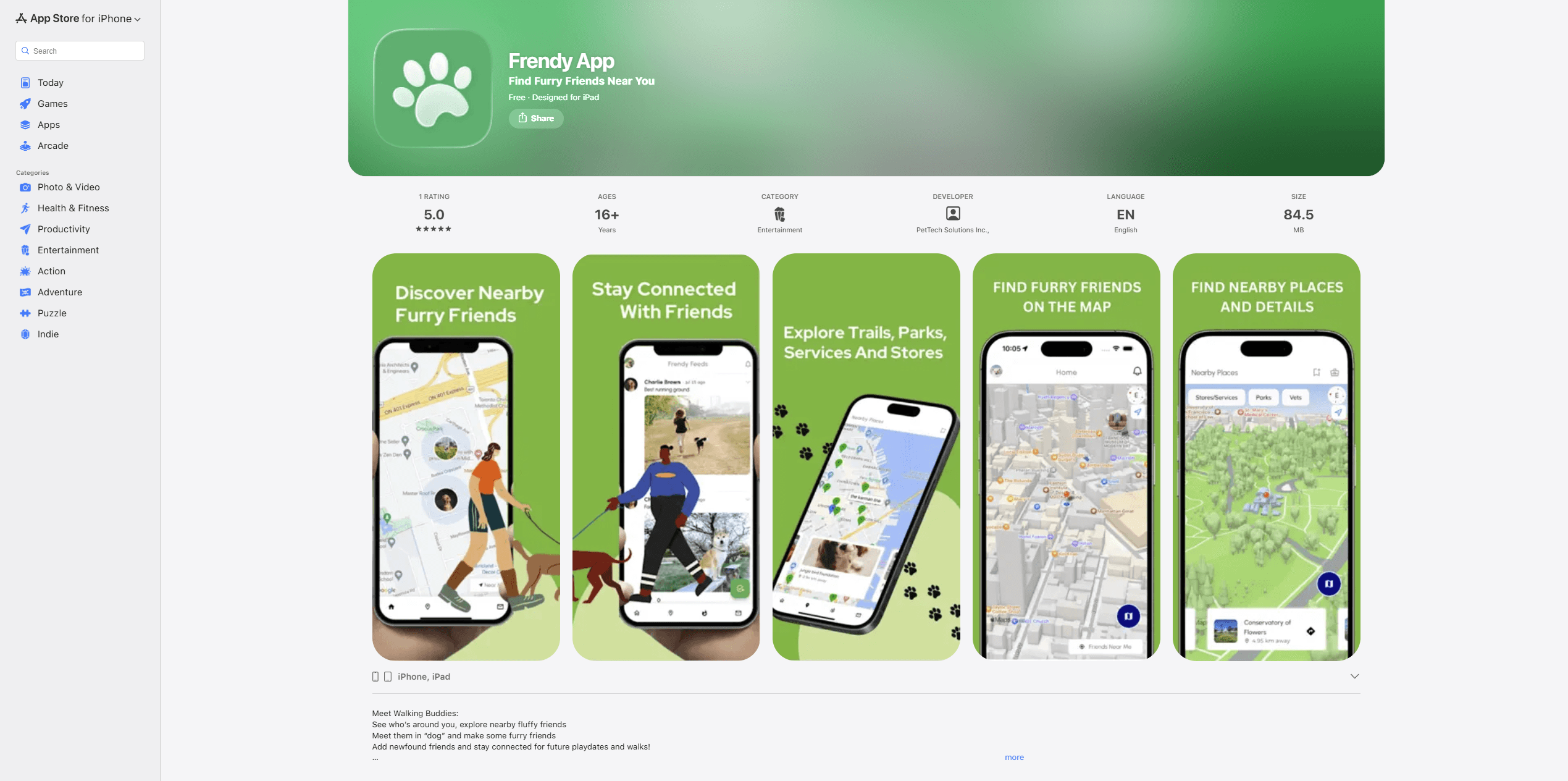 Frendy:Thebelovedcompanionappforpetowners,seamlesslyconnectingyoutonearbyparks,trackingyourpet’sactivities,andunlockingexclusivedealsforyourfurryfriends.